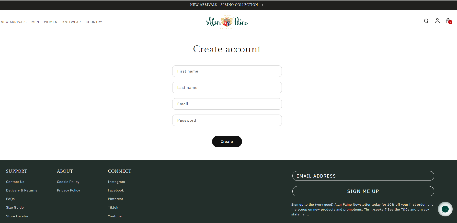 To create an account, please click the symbol resembling a person in the top right corner. This will take you to the log in page. Under the log in button, you will see create account underlined. If you click this you will be taken to the page as shown below.